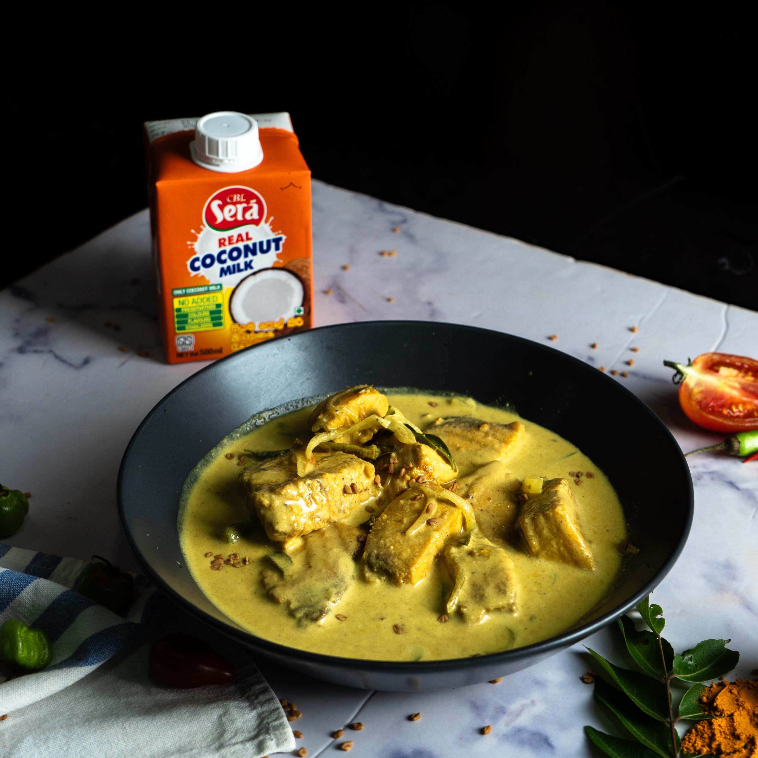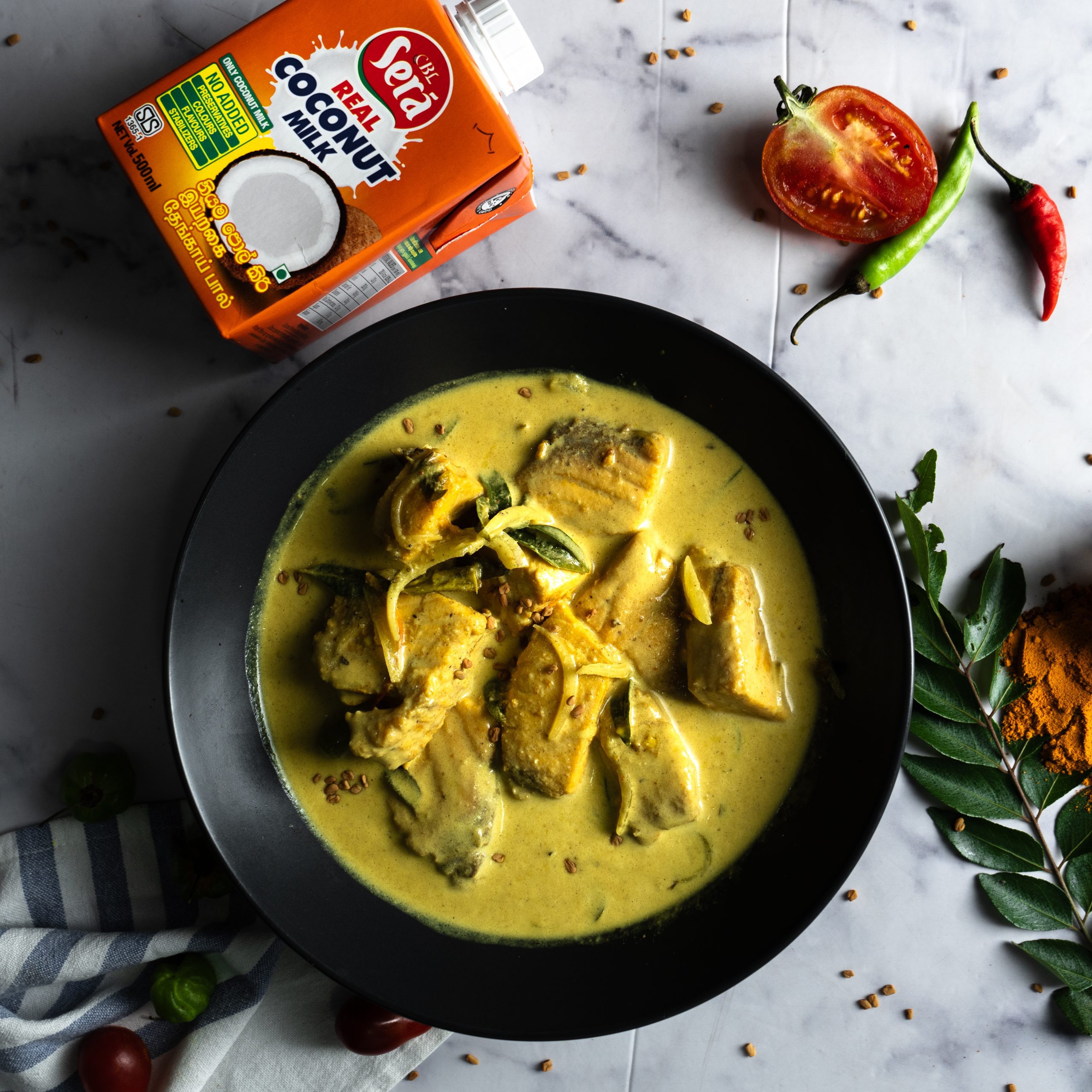 ඊට පස්සේ අපි මාළු කෑලි ටික වැහෙන විදියට උකු පොල් කිරි එකතු කරගන්න ඕන.