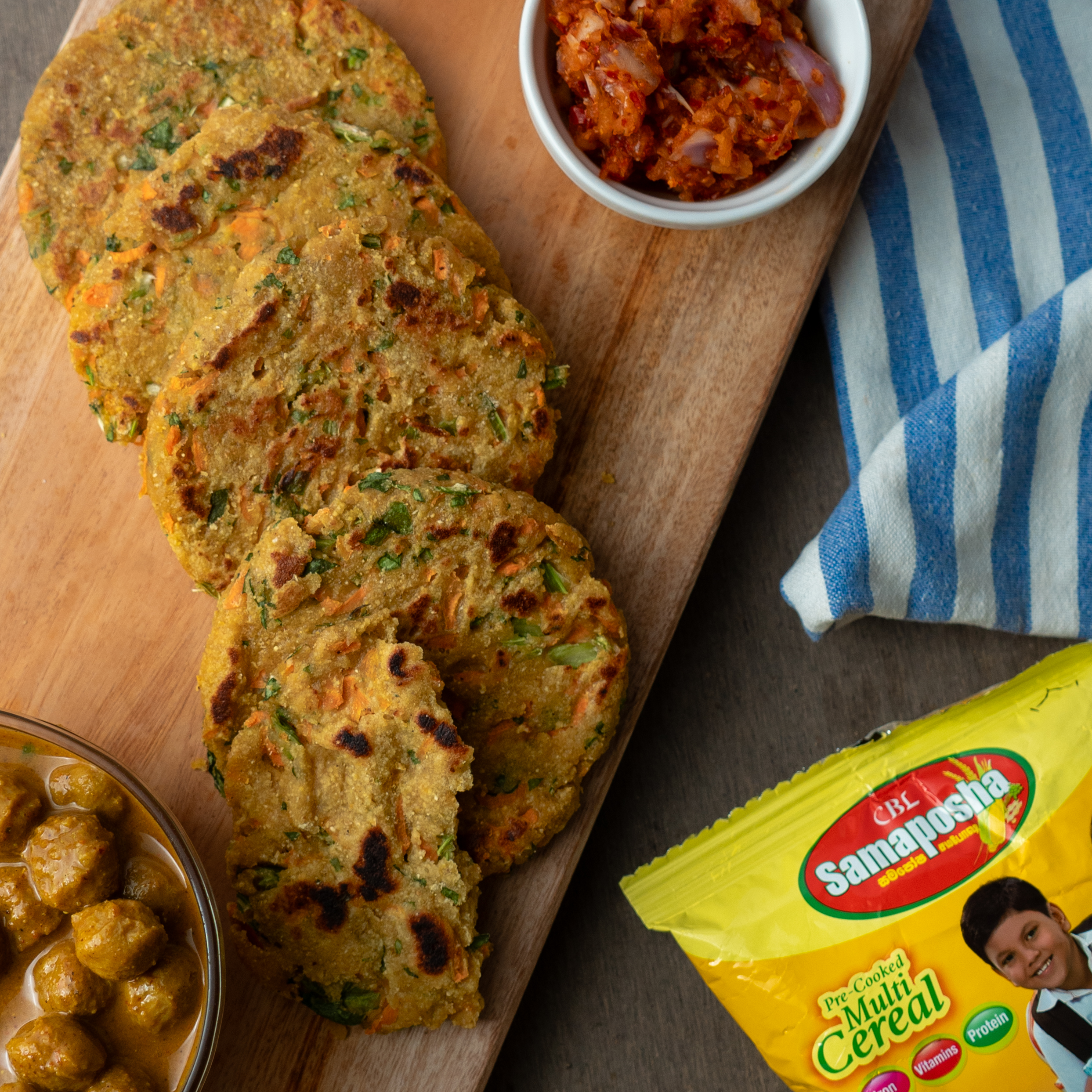 එම මිශ්රණයෙන් කුඩා බෝල සාදා, අඟල් 3 ක විශ්කම්භයට පැතලි කර පොඩි රවුම් සාදා රොටි තැටියක දමා එක පැත්තක් විනාඩි 3 බැගින් දෙපැත්තම පුළුස්සා ගන්න.