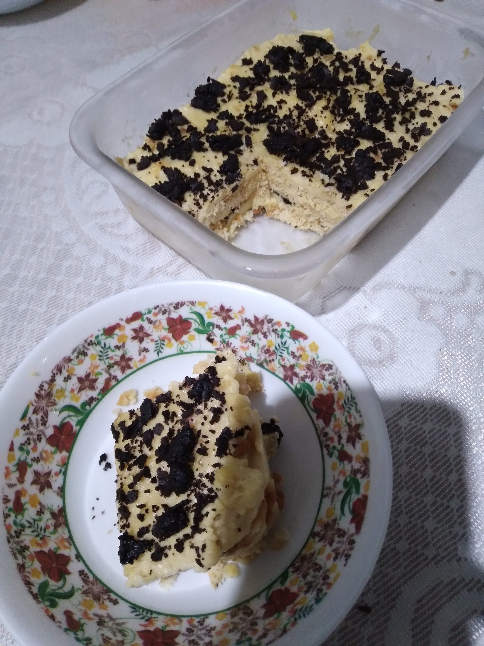 එලෙස බිස්කට් තට්ටුවක් හා ක්රීම් තැවරුම් තට්ටුවක් ලෙස අතුරා උඩම ක්රීම් තැවරුම් තට්ටුවක් ලෙස නිම කරගන්න